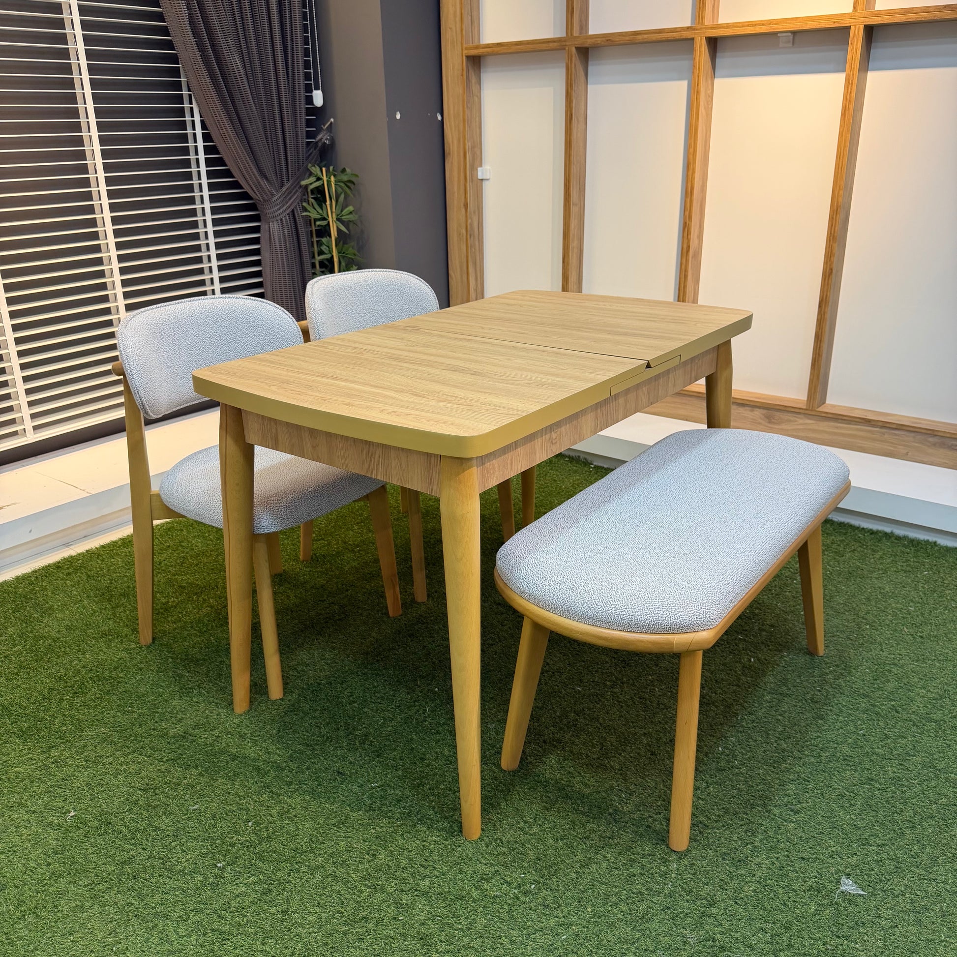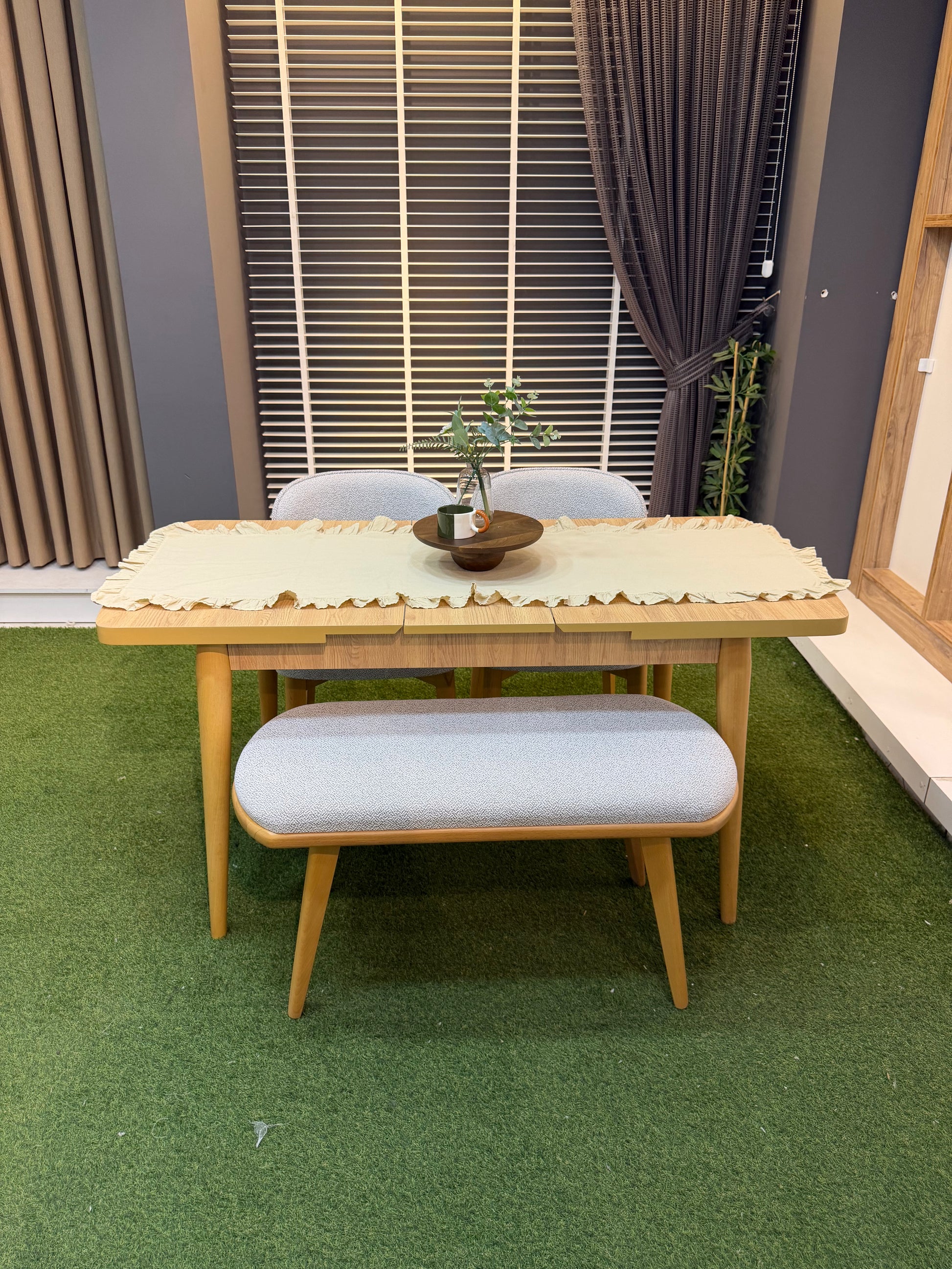 Küçük alanlar için fonksiyonel ve pratik bir çözüm sunan bu masa takımı, açılır masa özelliğiyle kullanım kolaylığı sağlar. Günlük kullanımda yer kaplamayan masa, misafirlerinize daha geniş bir alan sunmak istediğinizde kolayca büyütülebilir.