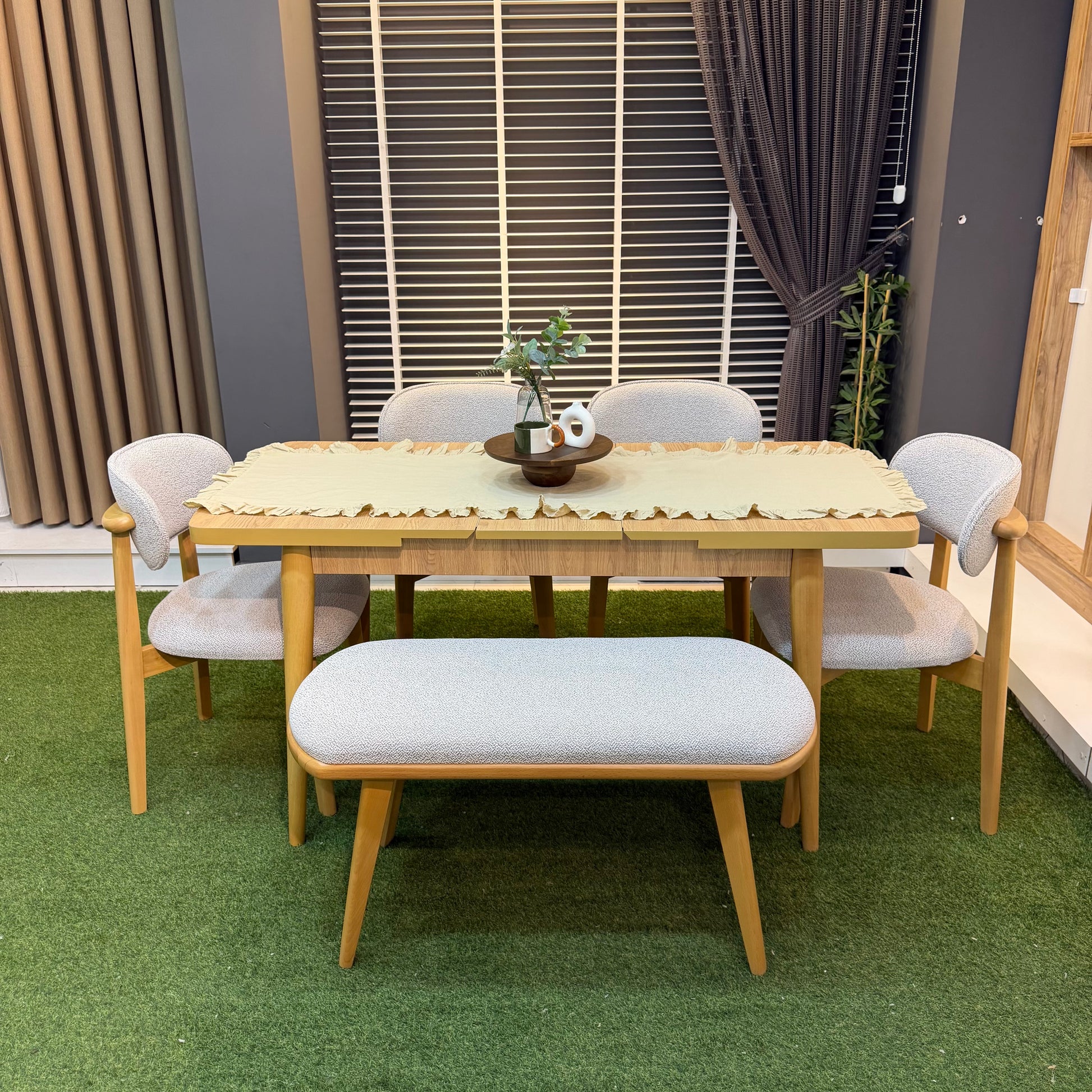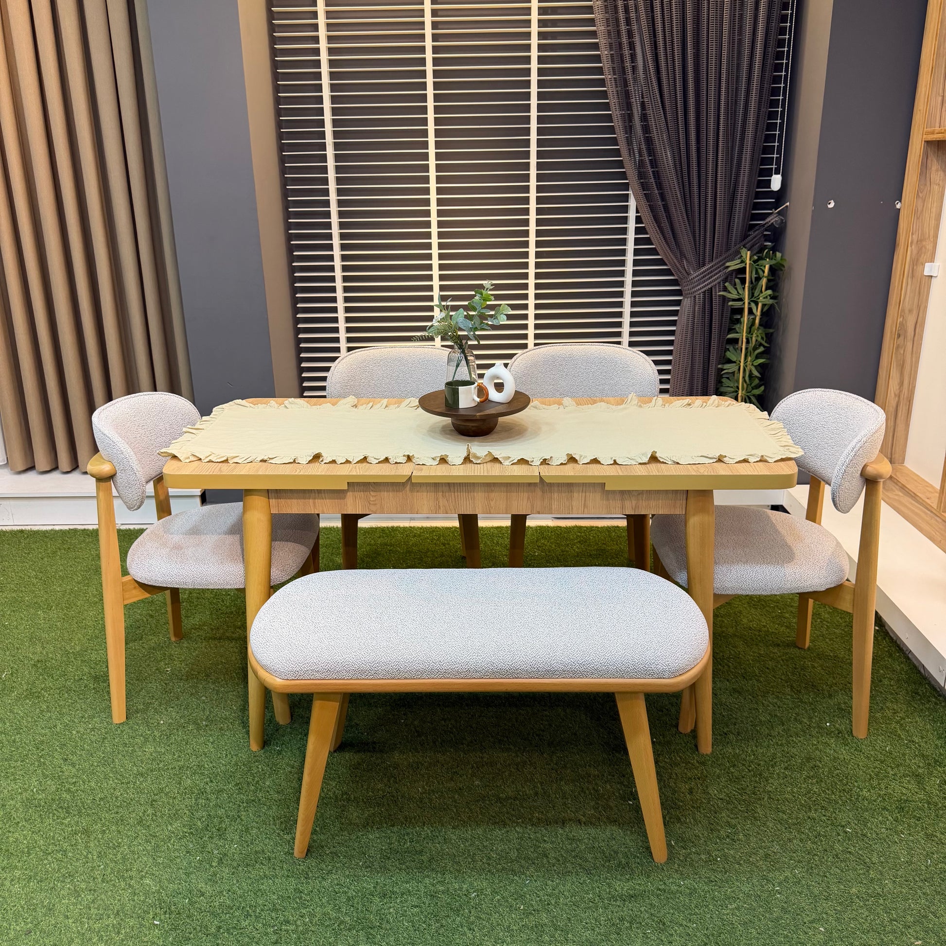 4 adet sandalye, 1 adet bench ve 1 adet masa