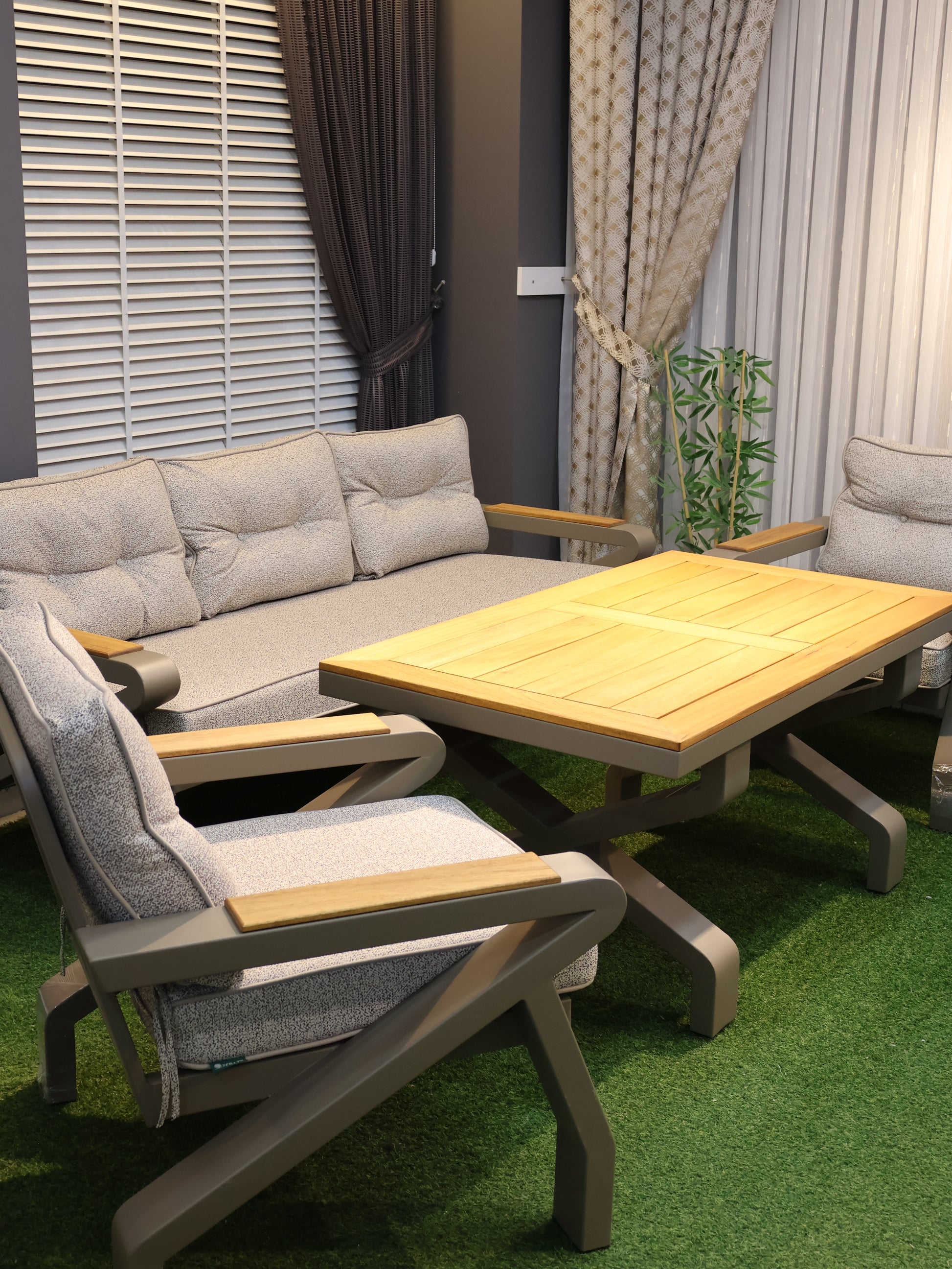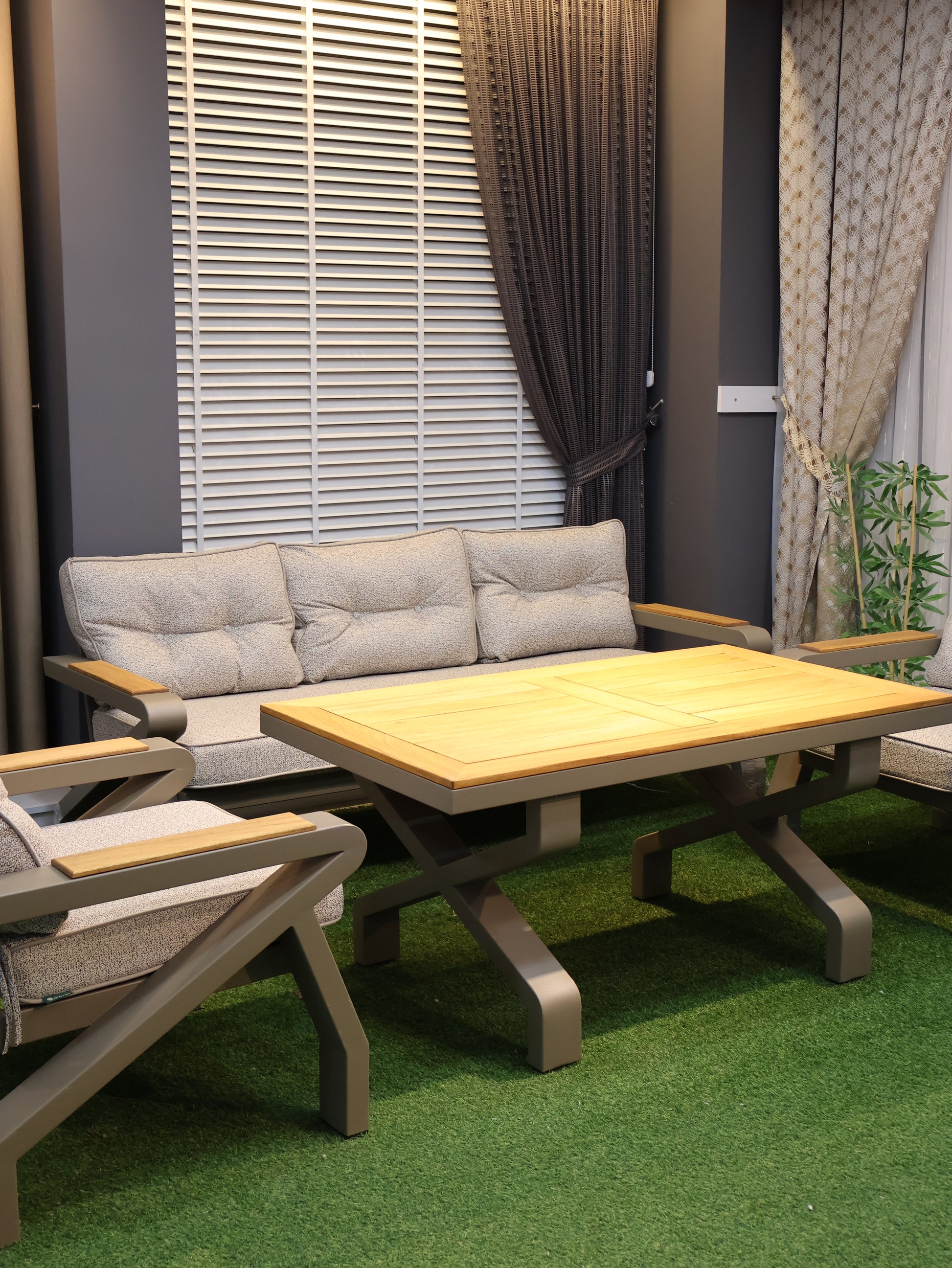Alüminyumun hafif ve paslanmaz yapısı ile iroko ağacının doğal ve sağlam dokusunu bir araya getiren Monarch Oturma Grubu, dış mekânlarda uzun ömürlü ve konforlu kullanım sunar. Modern tasarımıyla bahçe, teras ve balkonlara güçlü bir karakter kazandırır.